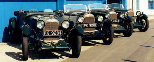 As on the 1928 cars, a scuttle-mounted reserve oil tank was fitted, its tap also mounted within the cockpit. The compression ratio was increased to 7.2:1, the pots enlarged and polished, and twin Zenith 35mm triple diffuser carburettors fitted. A very close ratio OH gearbox was used and an OH rear axle fitted with a special straight bevel crown wheel and pinion, with a ratio of 4.0:1. Special quick-erect hoods and very small cycle type wings were fitted, as was a plain fairing over the front dumb irons. The chassis was also undertrayed, and again additional shock absorbers were fitted. The cars were registered PK 9201, PK 9202, PK 9203 and finished black over cream. PK 9204 differed in some respects, the chassis being extensively drilled, and the body very similar in fact to the 1928 car.